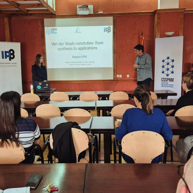 As part of the seminar series organized by the Center for Solid State Physics and New Materials at the Institute of Physics Belgrade, Dr Bojana Višić gave a lecture titled “Van der Waals Nanotubes – From Synthesis to Applications” on Friday, 10 October 2025.