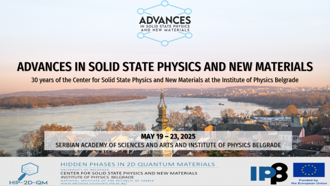From May 19 to 23, 2025, the Institute of Physics Belgrade and the Serbian Academy of Sciences and Arts hosted the international conference Advances in Solid State Physics and New Materials, marking the 30th anniversary of the Center for Solid State Physics and New Materials (CSSPNM).