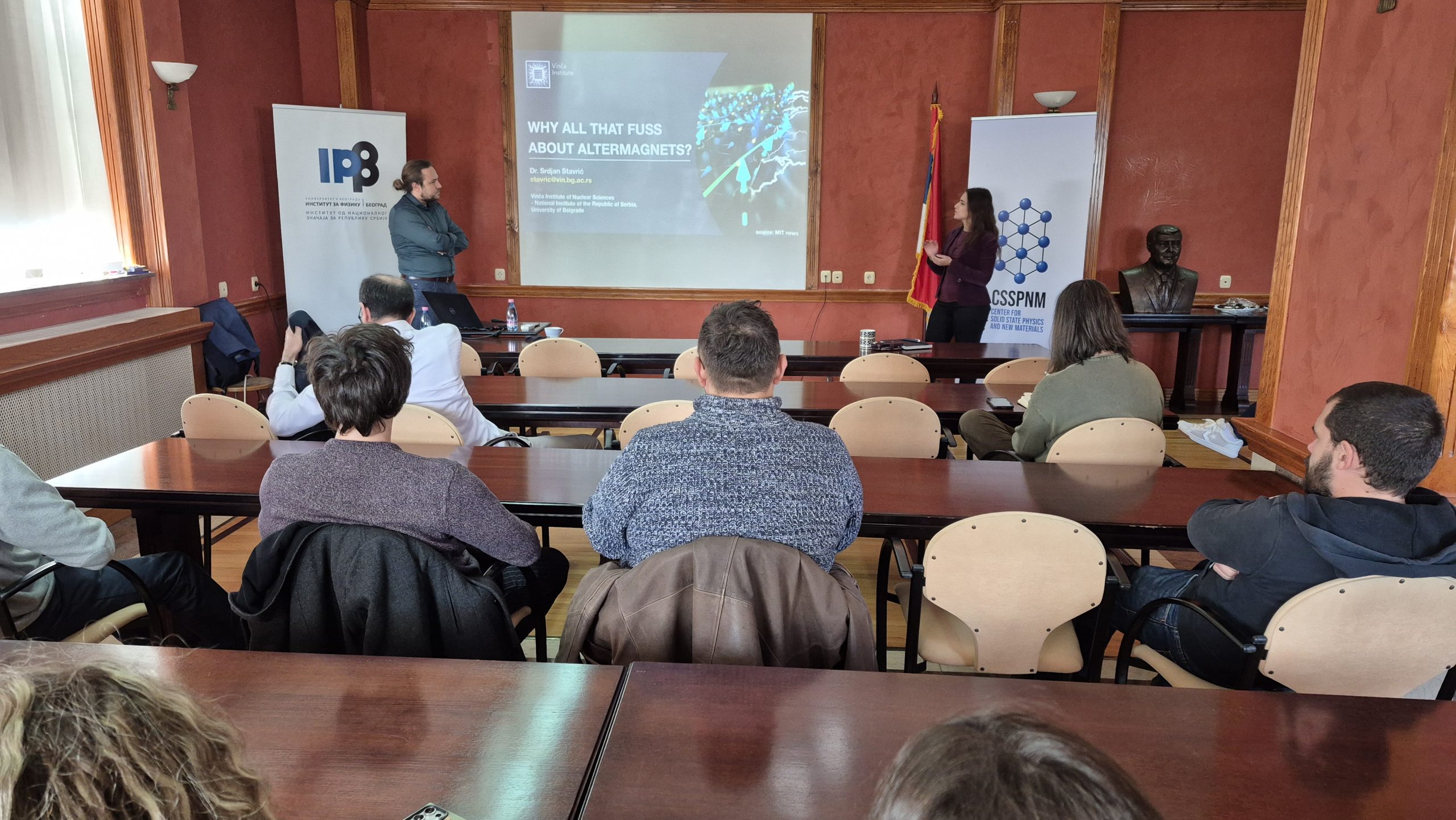 As part of the seminar series organized by the Center for Solid State Physics and New Materials at the Institute of Physics Belgrade, Dr. Srđan Stavrić (Vinča Institute of Nuclear Sciences) gave a lecture titled “Why All That Fuss About Altermagnets?” on Monday, 20 October 2025.